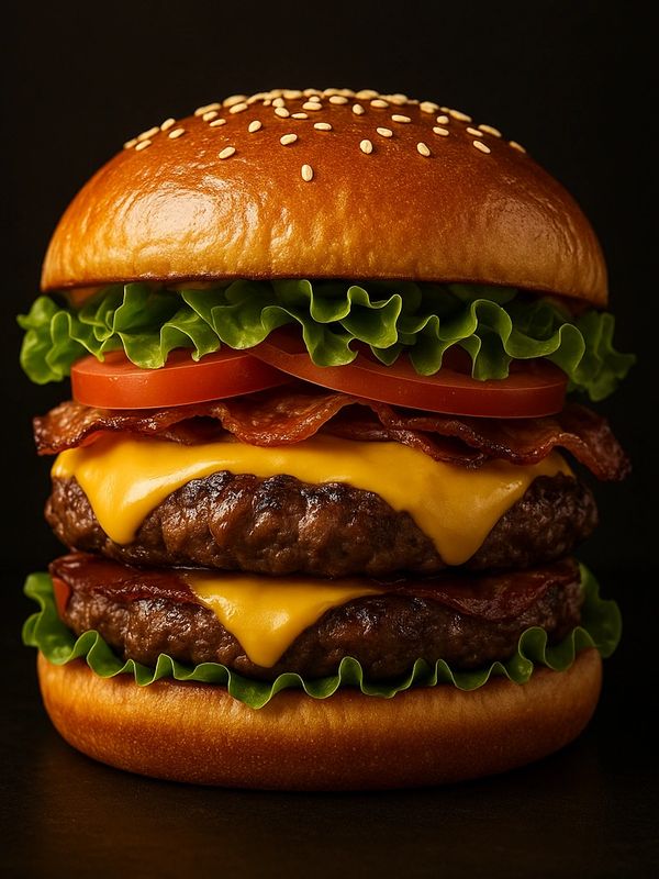 Double 150 gr Dana Köfte,Double cheddar,Karamelize soğan,Kasa gizli Sos,Büyük Brioche